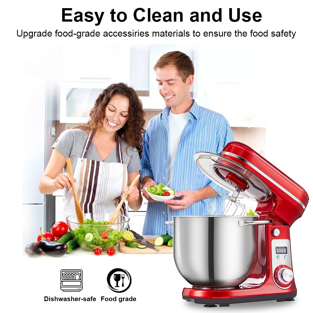 【Clear LED Display & Tilt Head Design】BioloMix dough mixer featured a digital display to show the operation time, it allows you can do other things at the same time when the mixer is working which effectively saves your time. Our multifunctional baking mixer aslo built in overheating protection and will automatically shut the machine off when motor gets overheating. The tilt head design not only switch the accessories conveniently but also take down the bowl easily.