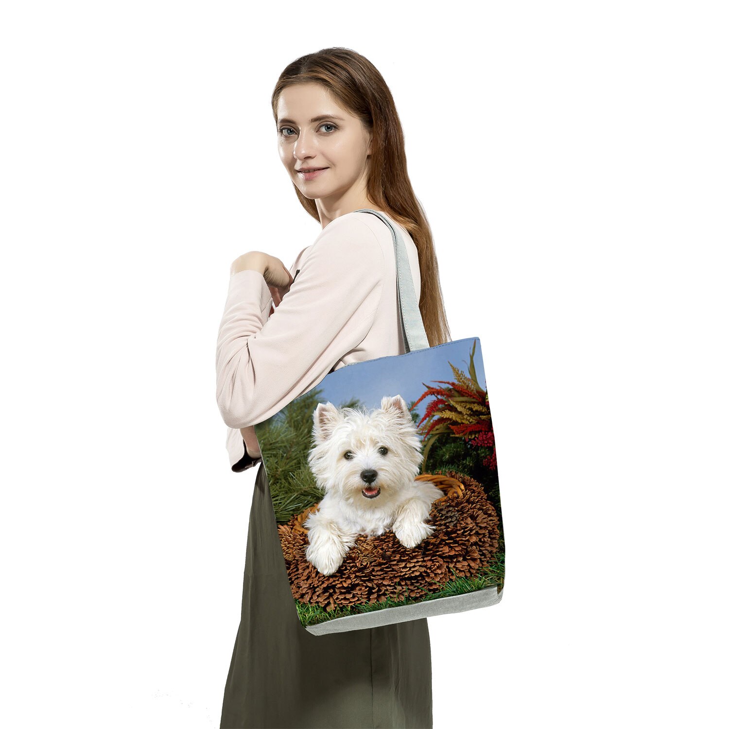 Cute West Dog Handbags For Women Customizable Groceries Pug Retriever Shopping Bags Foldable Animal Large Capacity Shoulder Bag