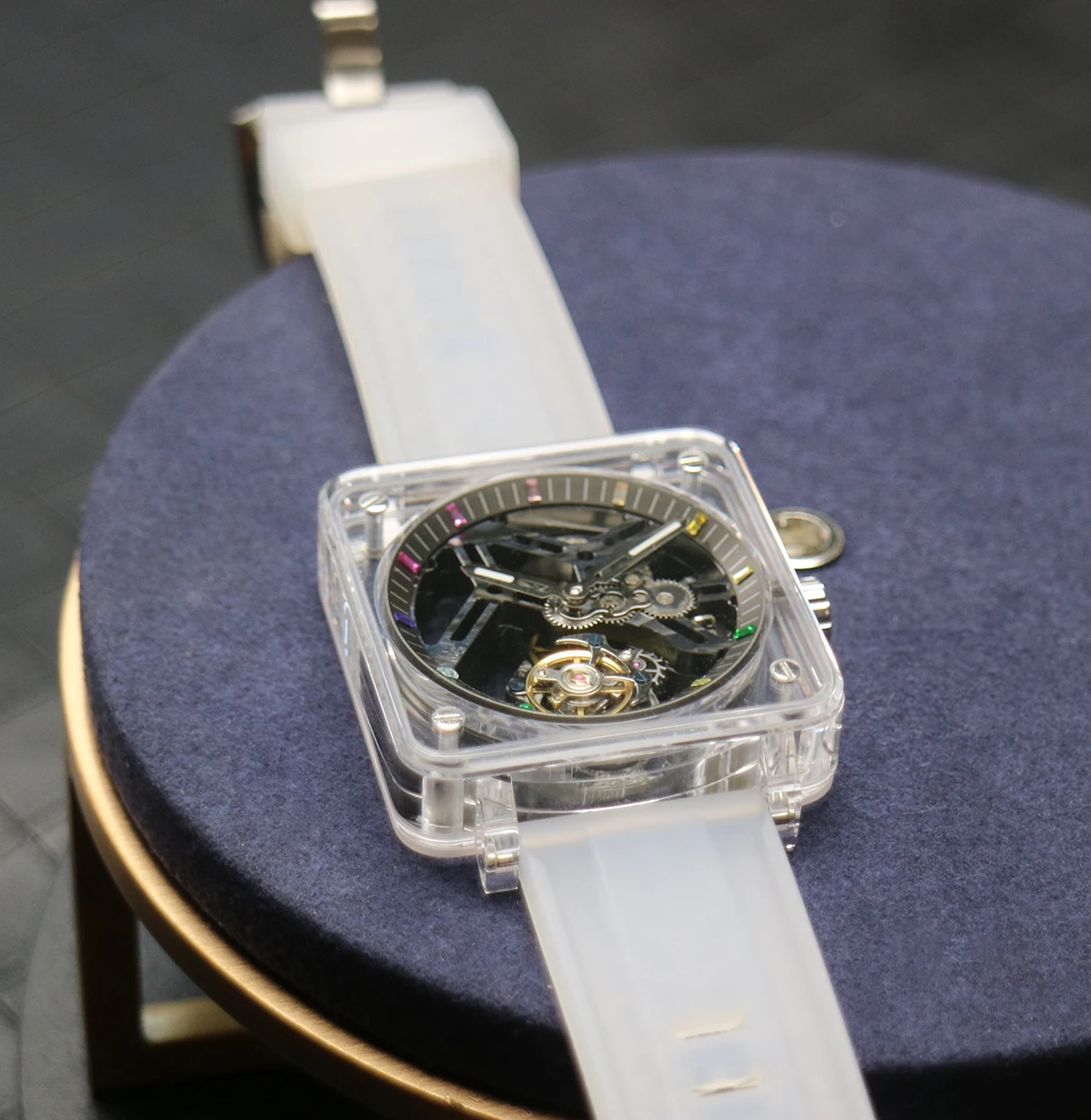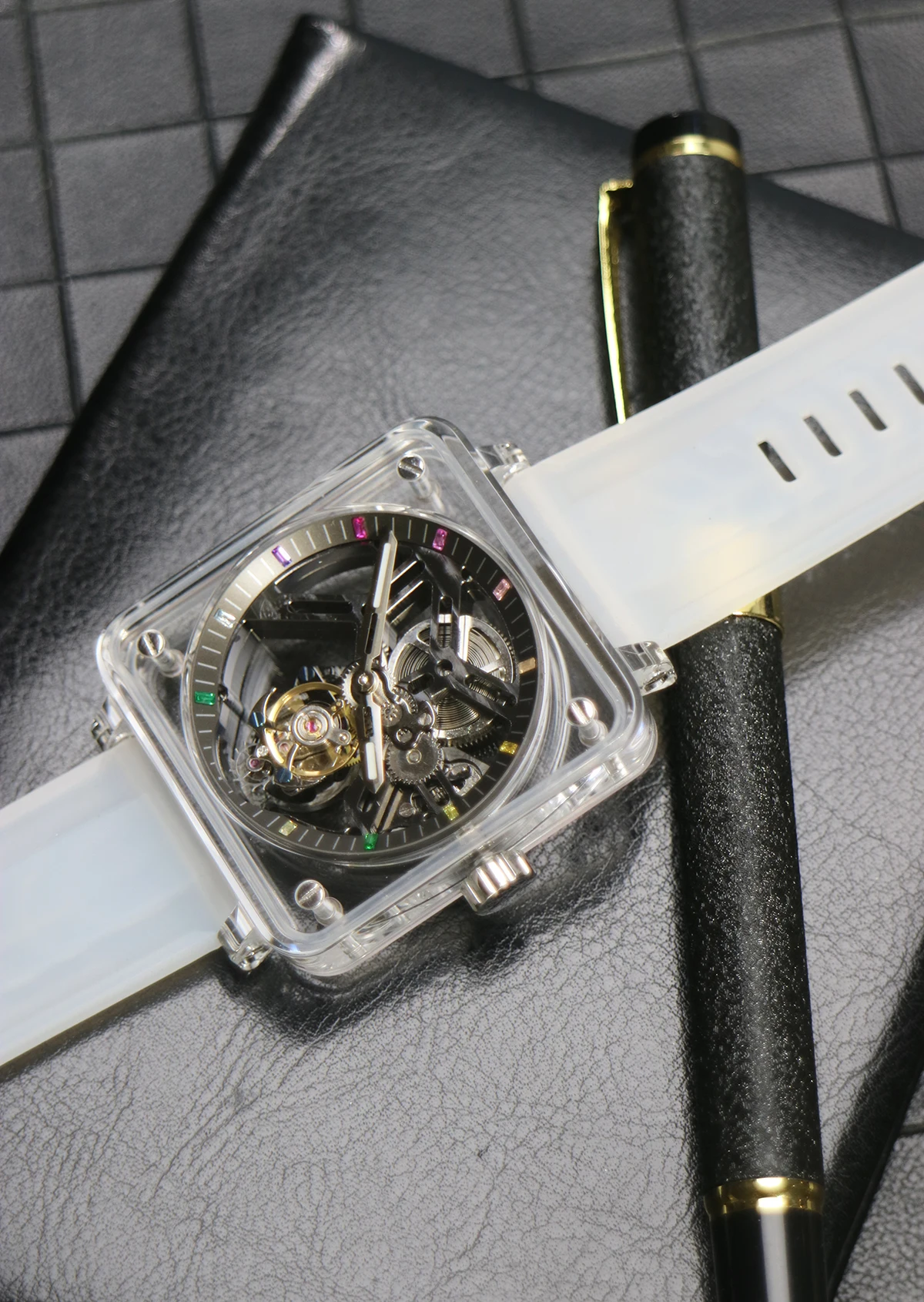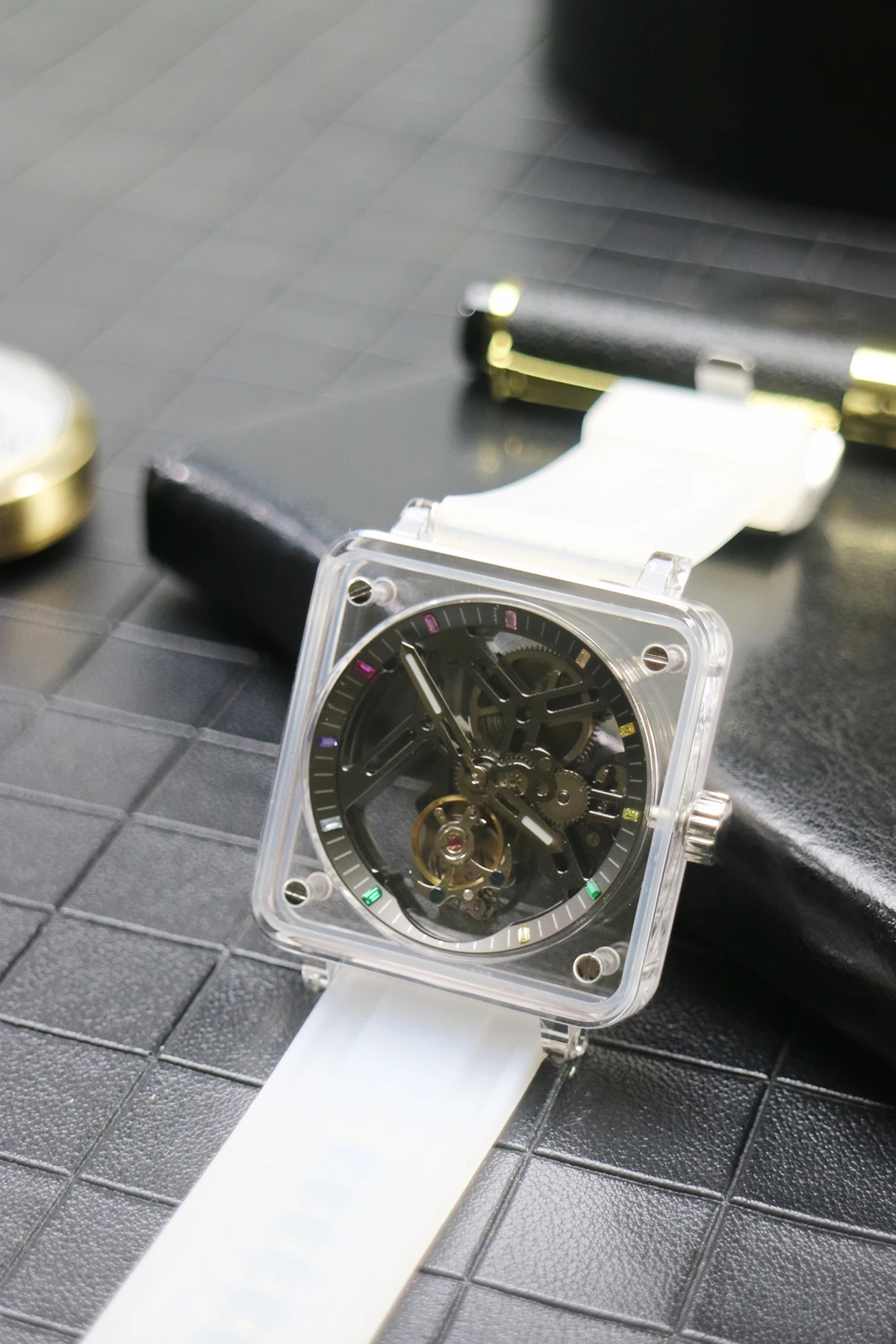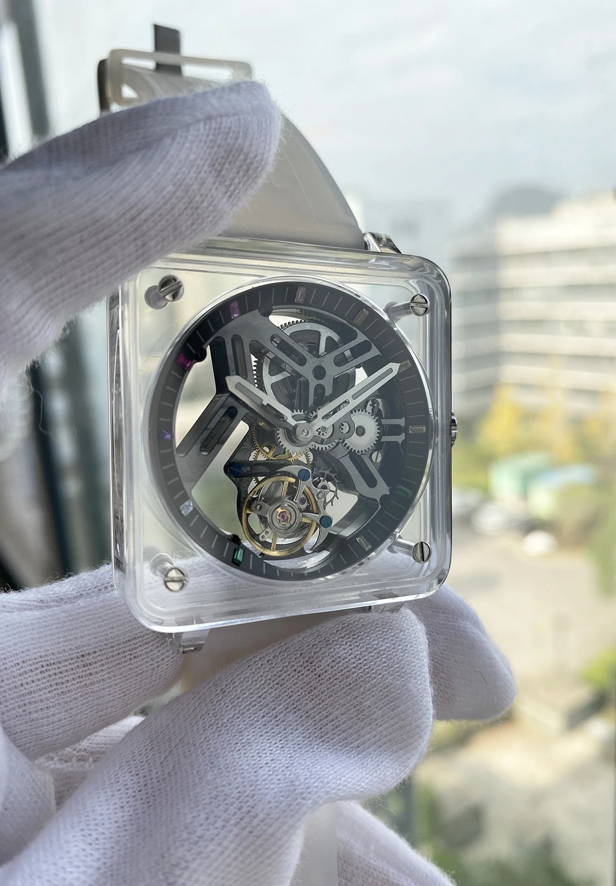 GIV Transparent Crystal Tourbillon Watch for Men Skeleton Dial Sapphire Waterproof Watches Manual Mechanical Luxury Watch Men