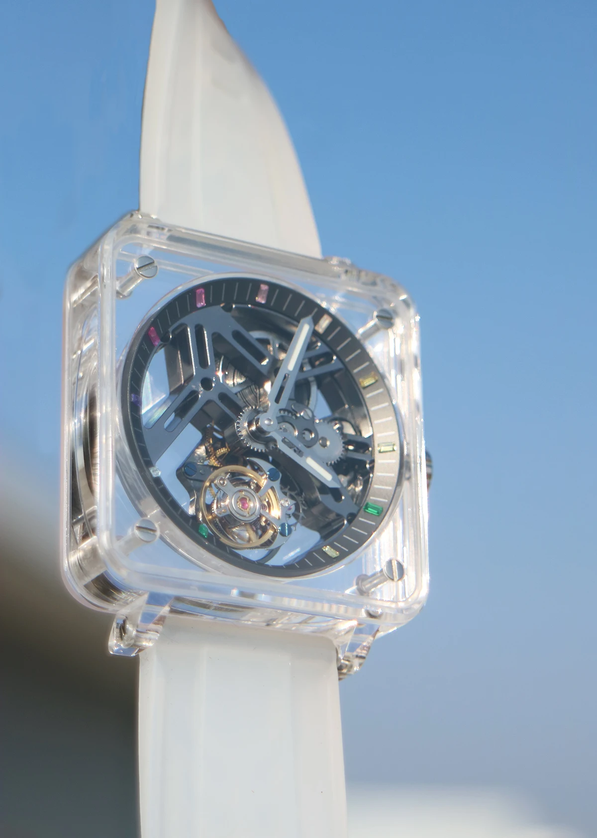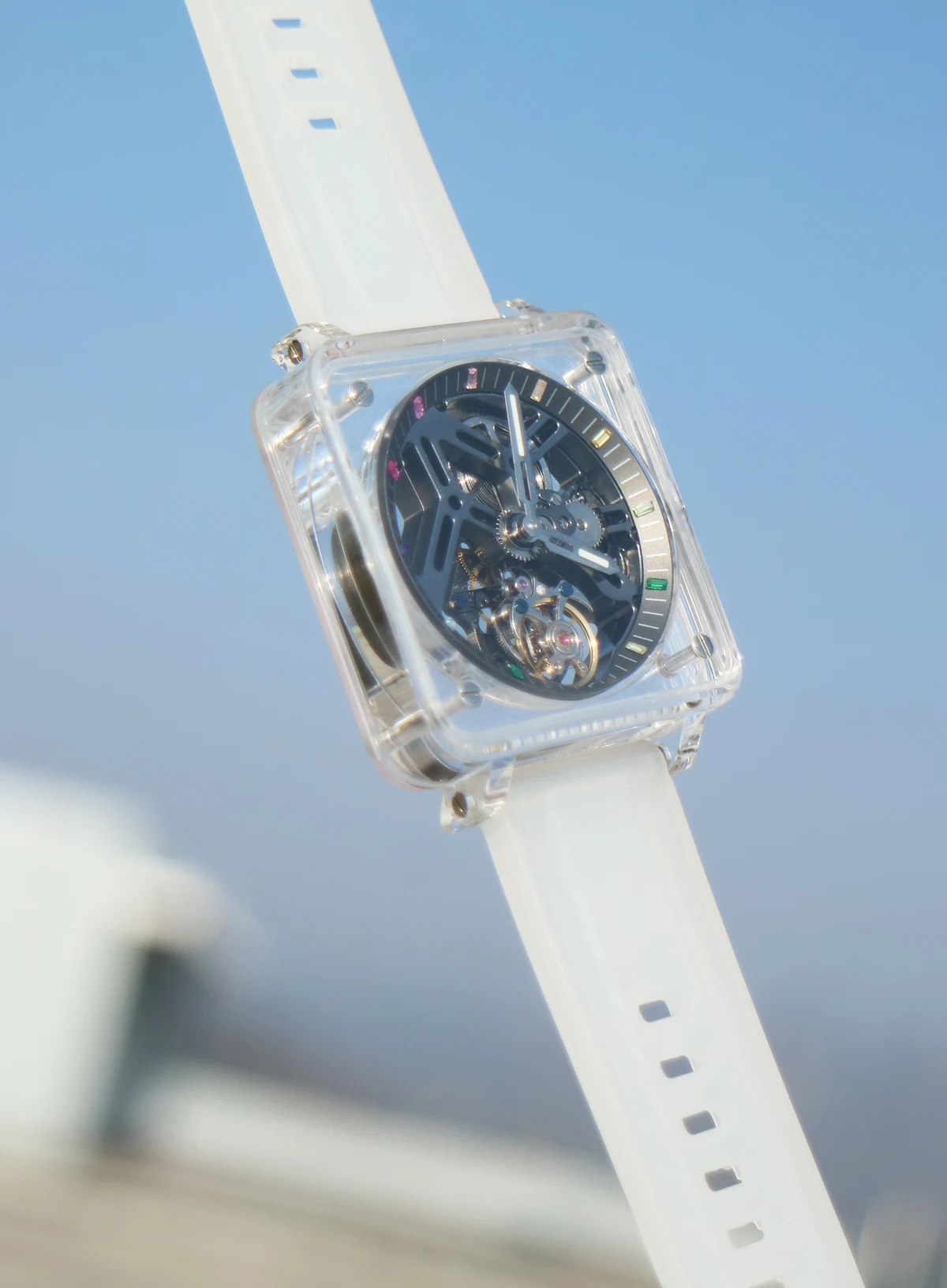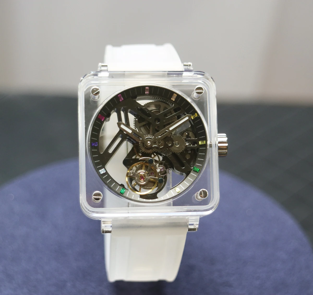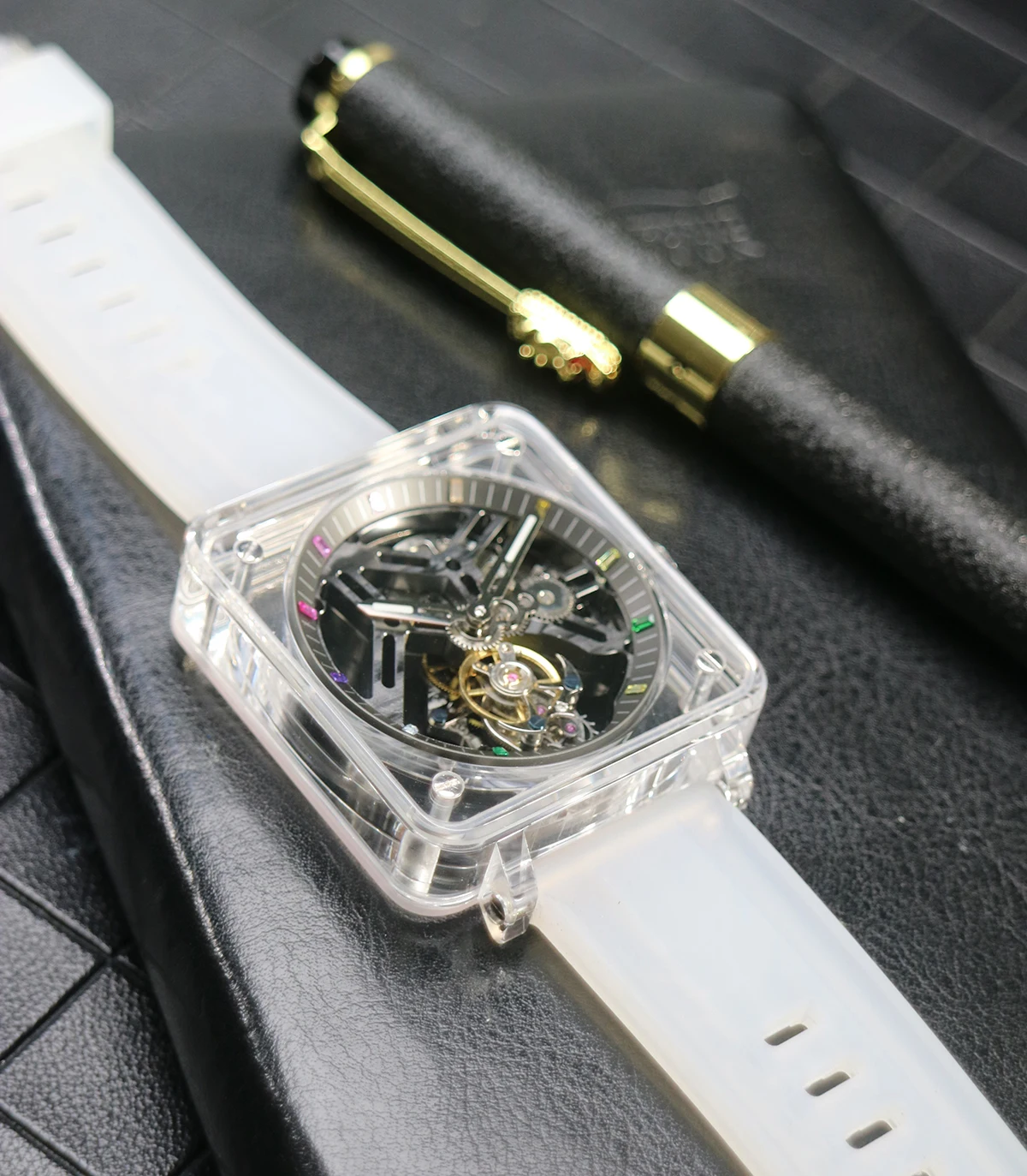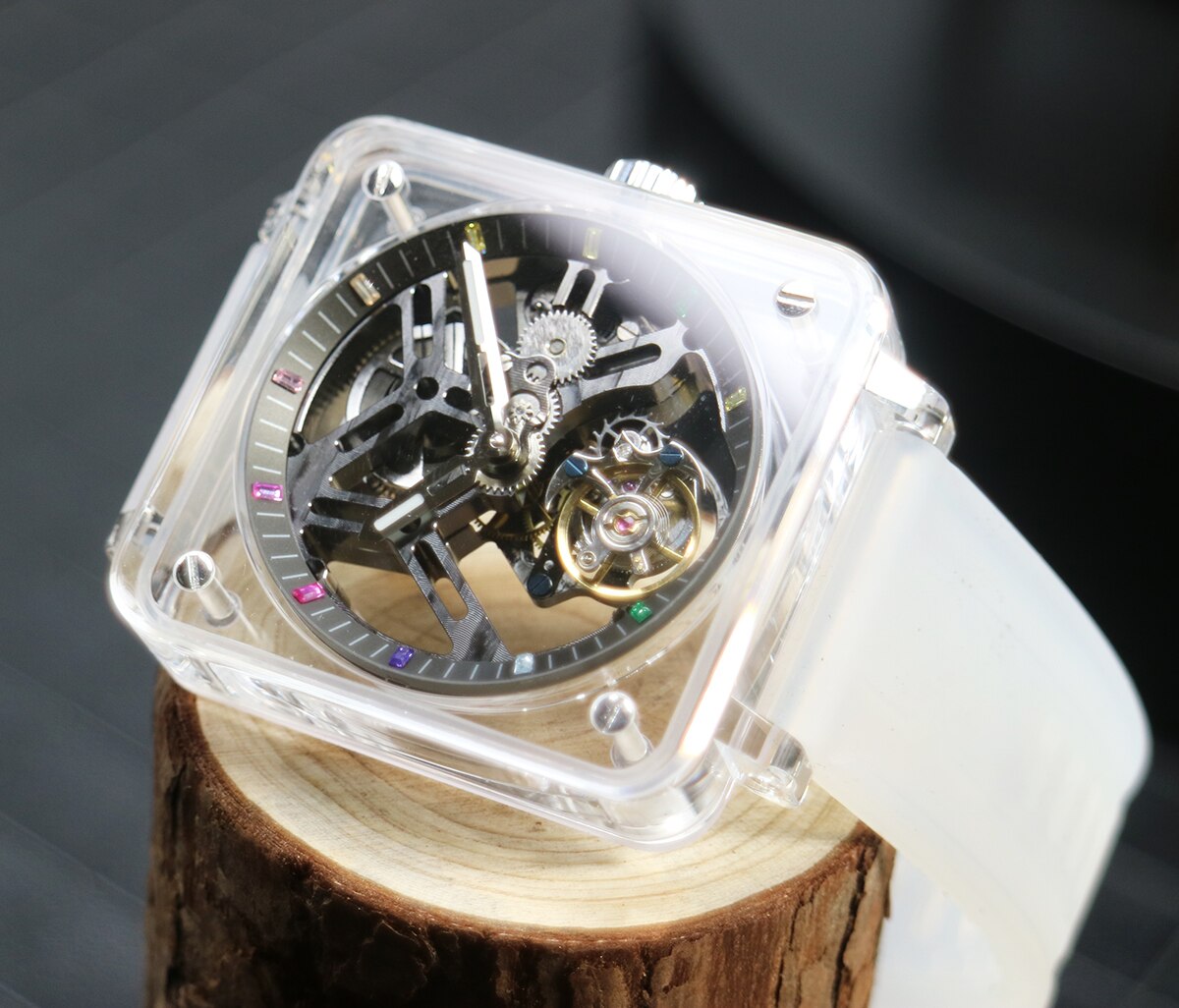 GIV Transparent Crystal Tourbillon Watch for Men Skeleton Dial Sapphire Waterproof Watches Manual Mechanical Luxury Watch Men