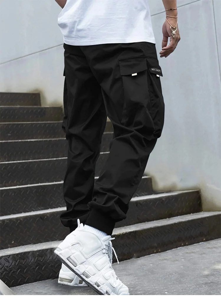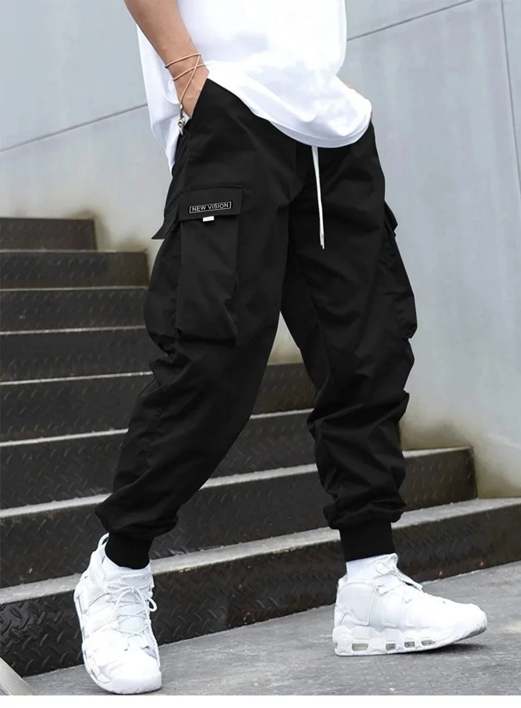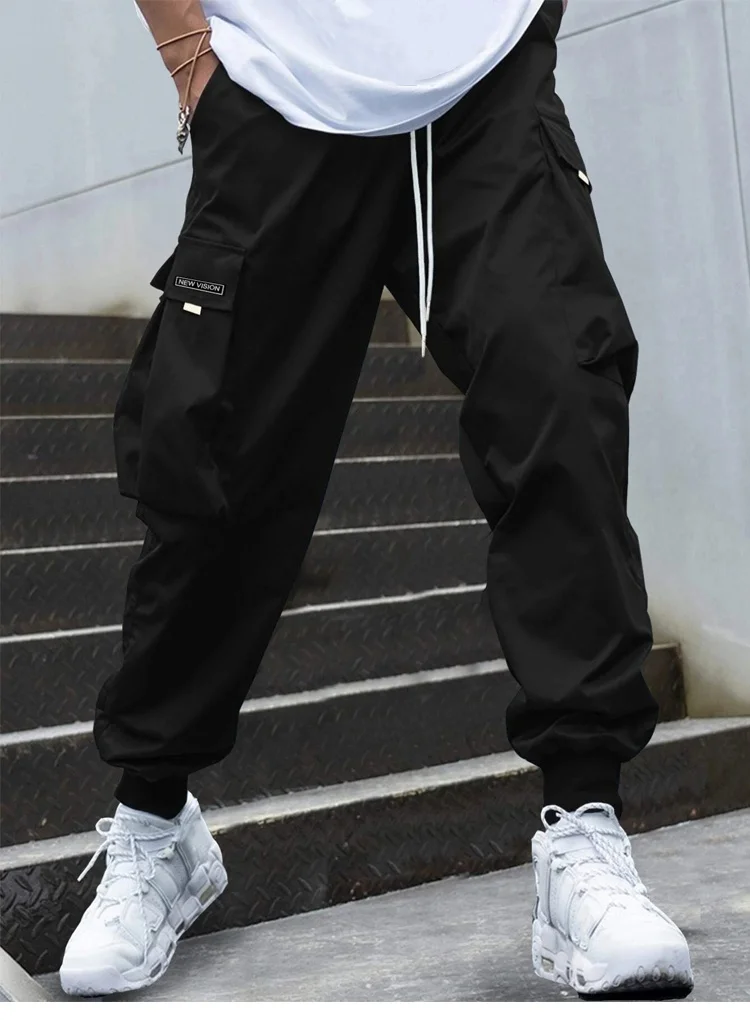 Men Letter Graphic Flap Pocket Drawstring Waist Cargo Pants