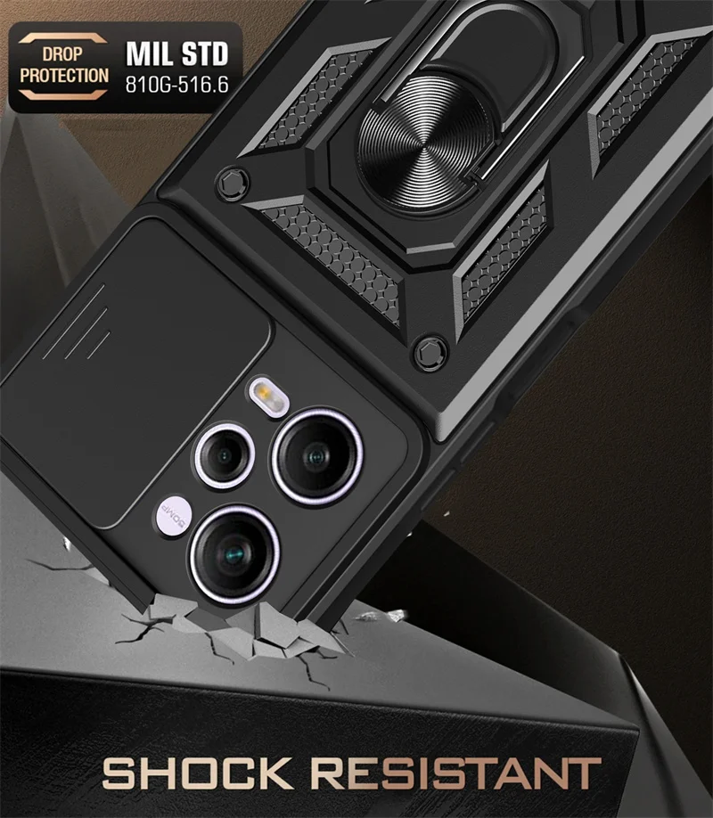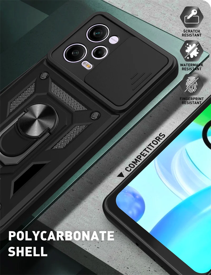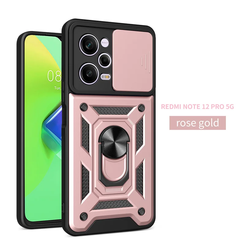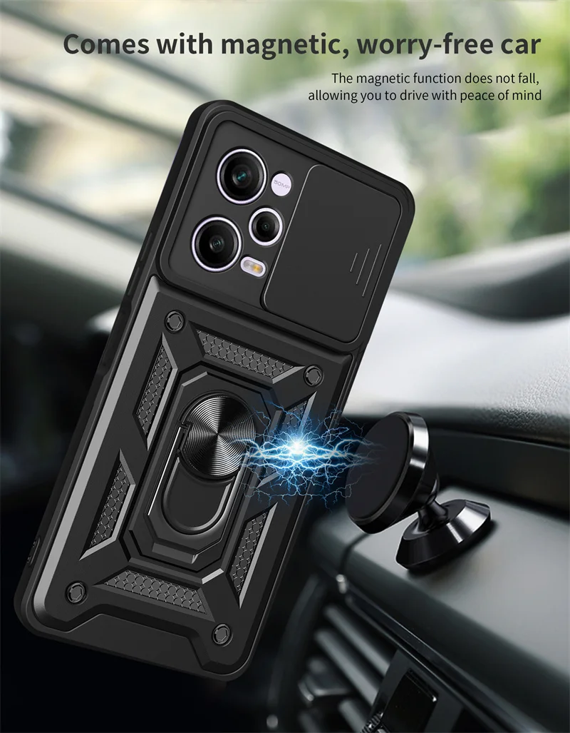 For Poco X5 Pro 5G Case Slide Camera Shockproof Armor Case For Poko Little X5 X 5 Pro X5pro Magnetic Holder Ring Protect Cover