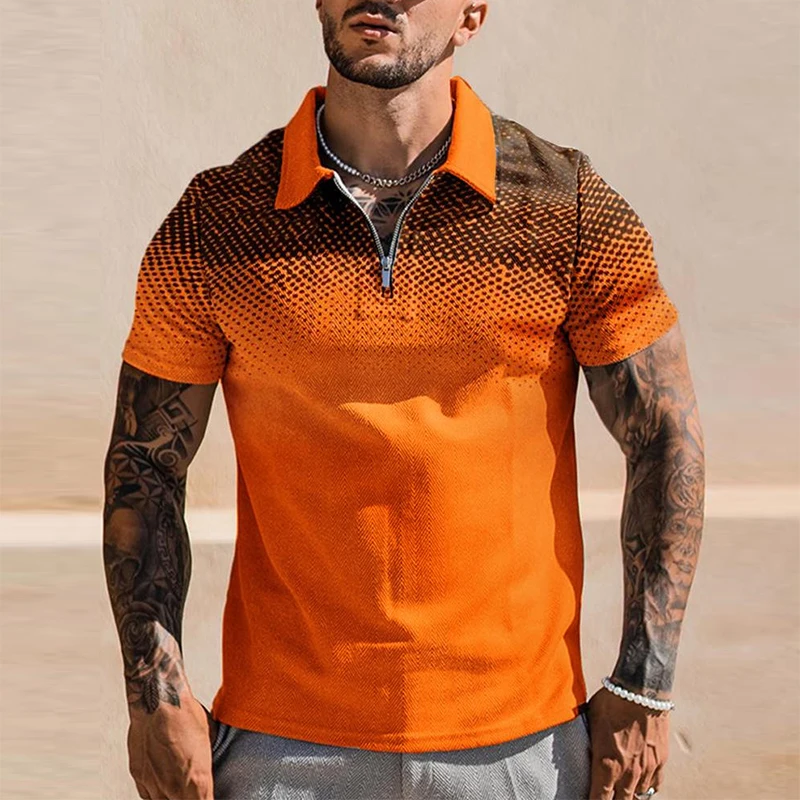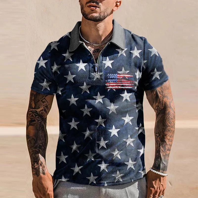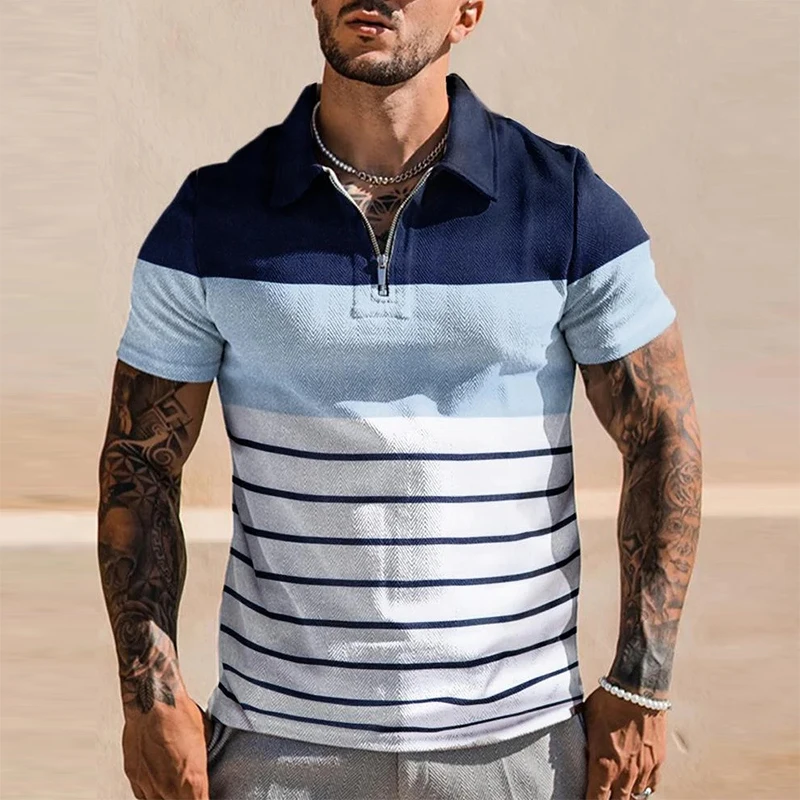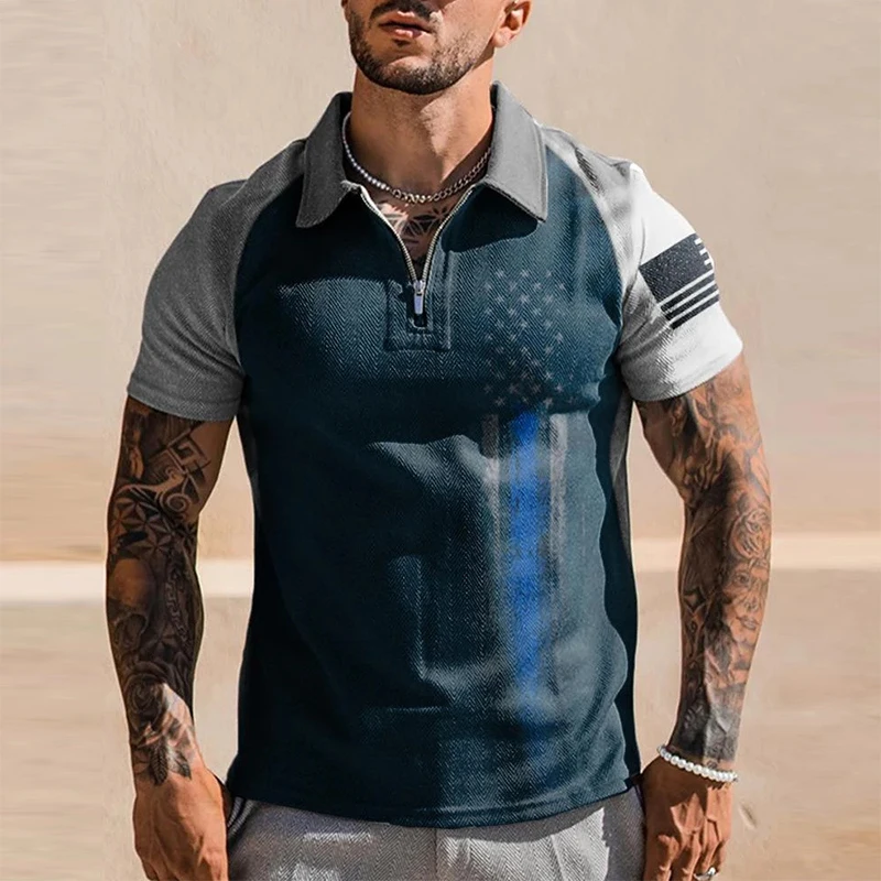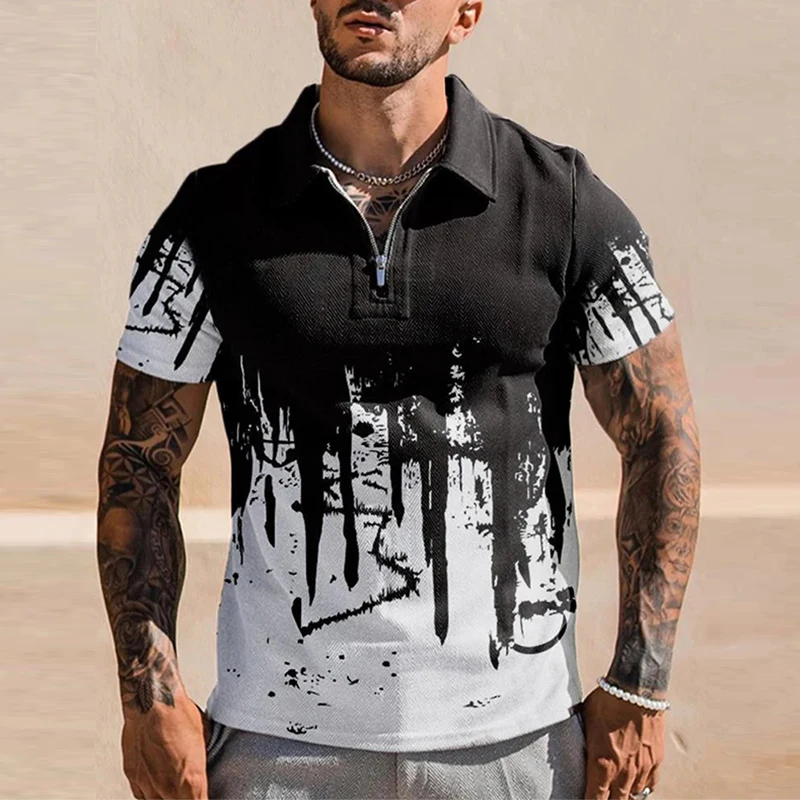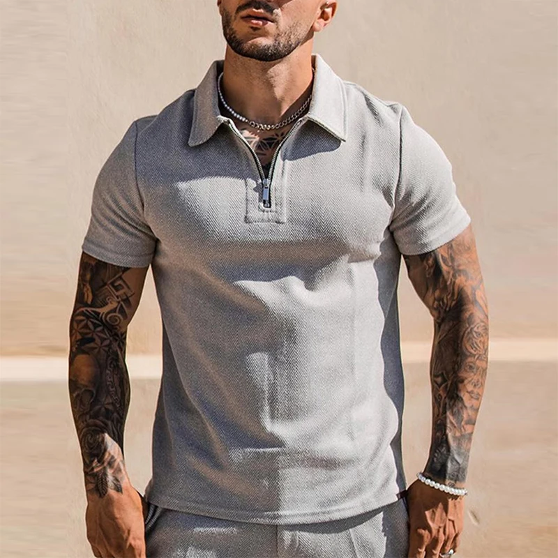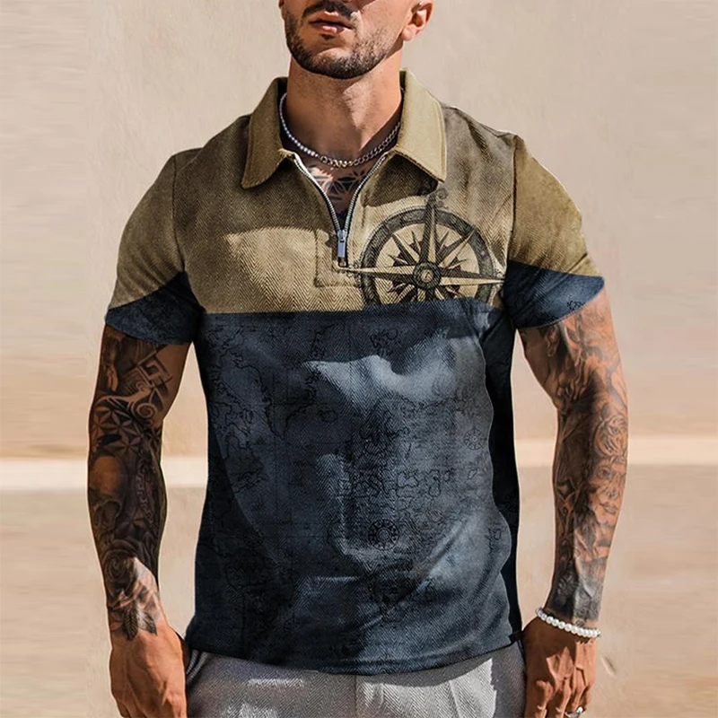 Vintage Turn-down Collar Zipper Solid Men's Polo Shirt 2023 Spring Summer Short Sleeve Casual Polos Tee Men Clothes Leisure Tops