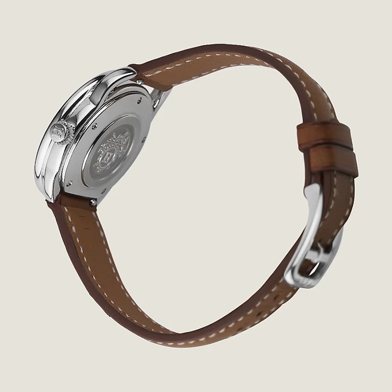 Water-resistant to 3 bar. Avoid all contact with water while wearing your Hermès leather watch.