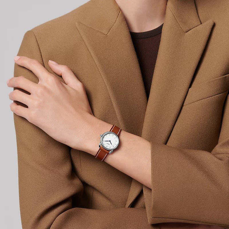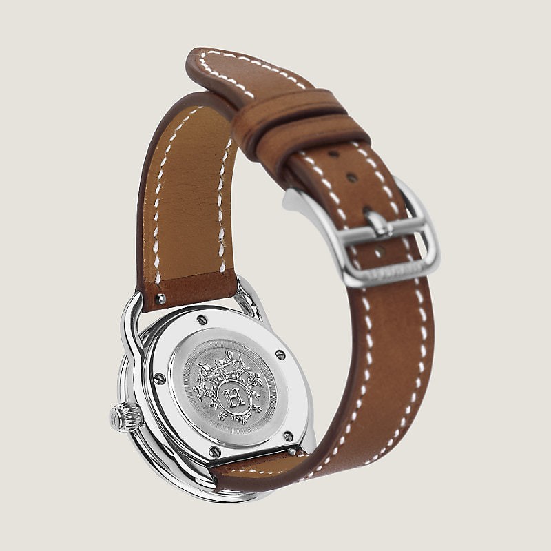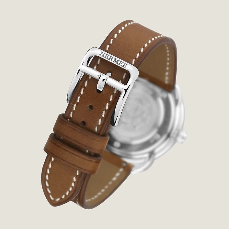 Water-resistant to 3 bar. Avoid all contact with water while wearing your Hermès leather watch.